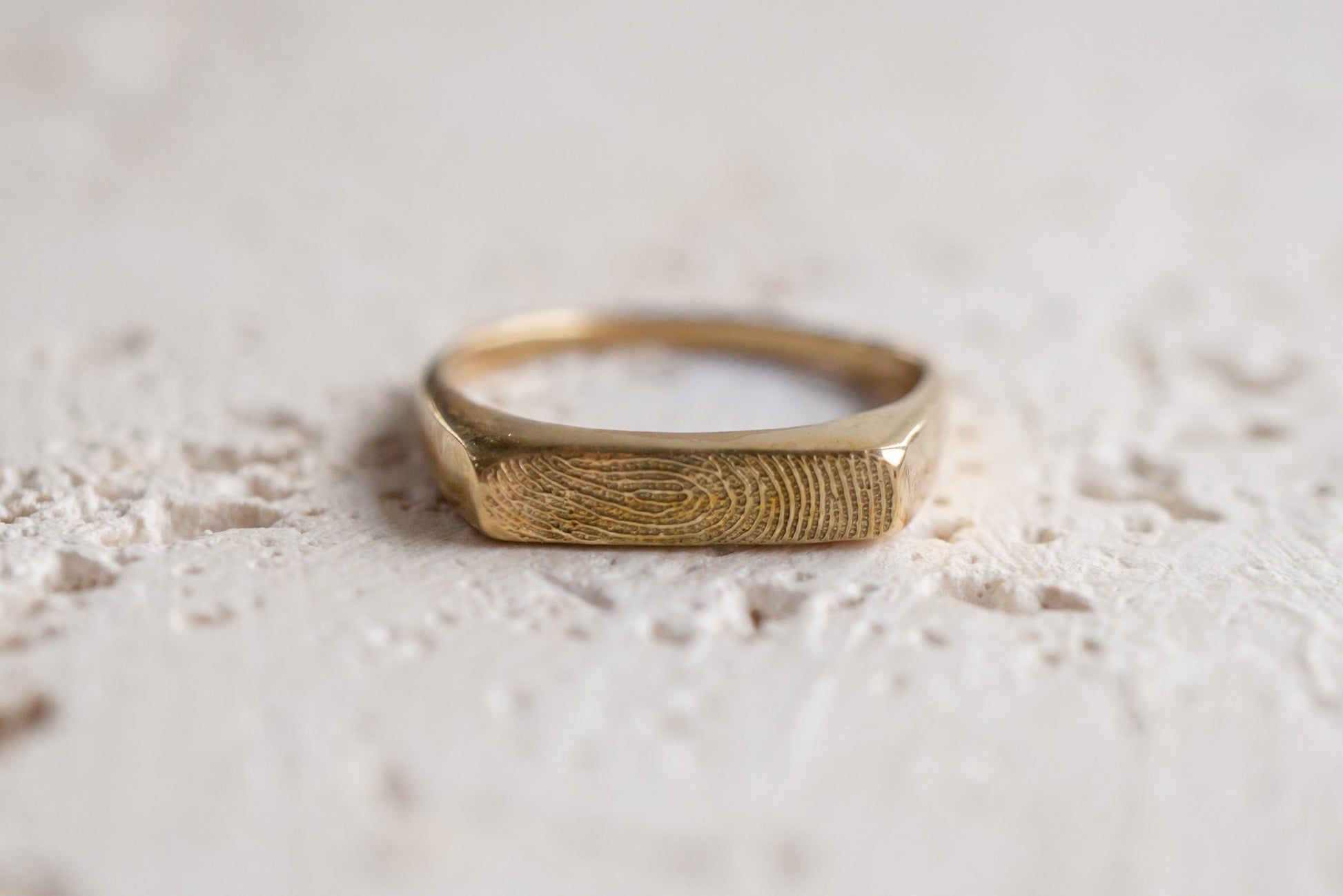The Fingerprint ring is a truly one of a kind talisman to hold your love one's unique touch close to your heart. The beauty is that you are the real designer of your jewelry! We leave the creativity to you and will construct your memorable piece based on a real fingerprint taken by you. Each piece is unique to every individual, complimenting the soft and organic shape of the finger. From newborn to the elderly, the fingerprint ring represents an everlasting memory of that special someone in your life.